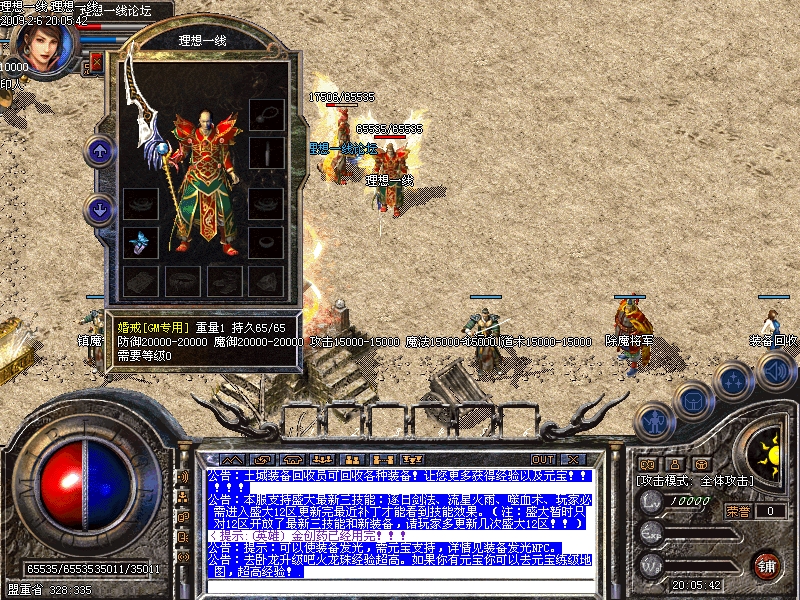 本服务器增加了游戏点卡冲值,冲值成功后直接可在游戏里领取元宝在线买终极,GM不在线也可以正常购买,详细情况查看网站